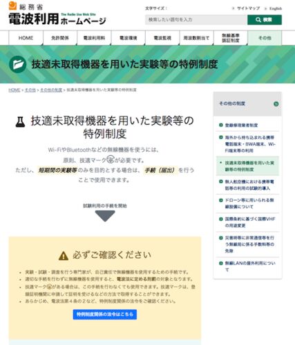 144Lab/スイッチサイエンスの菊地です。 昨日11月20日より改正電波法の一部が施行され、総務省電波利用ホームページ内に「技適未取得機器を用いた実験等の特例制度」のページが開設されました。 これは「技適」相当の技術基準を満たす無線機器については、実…